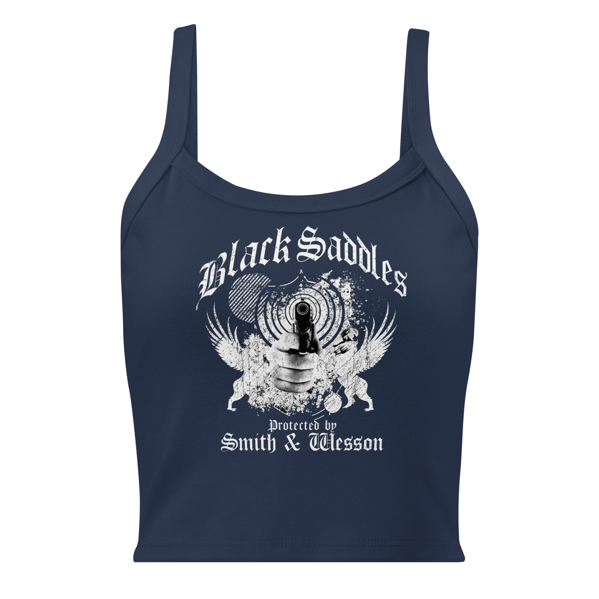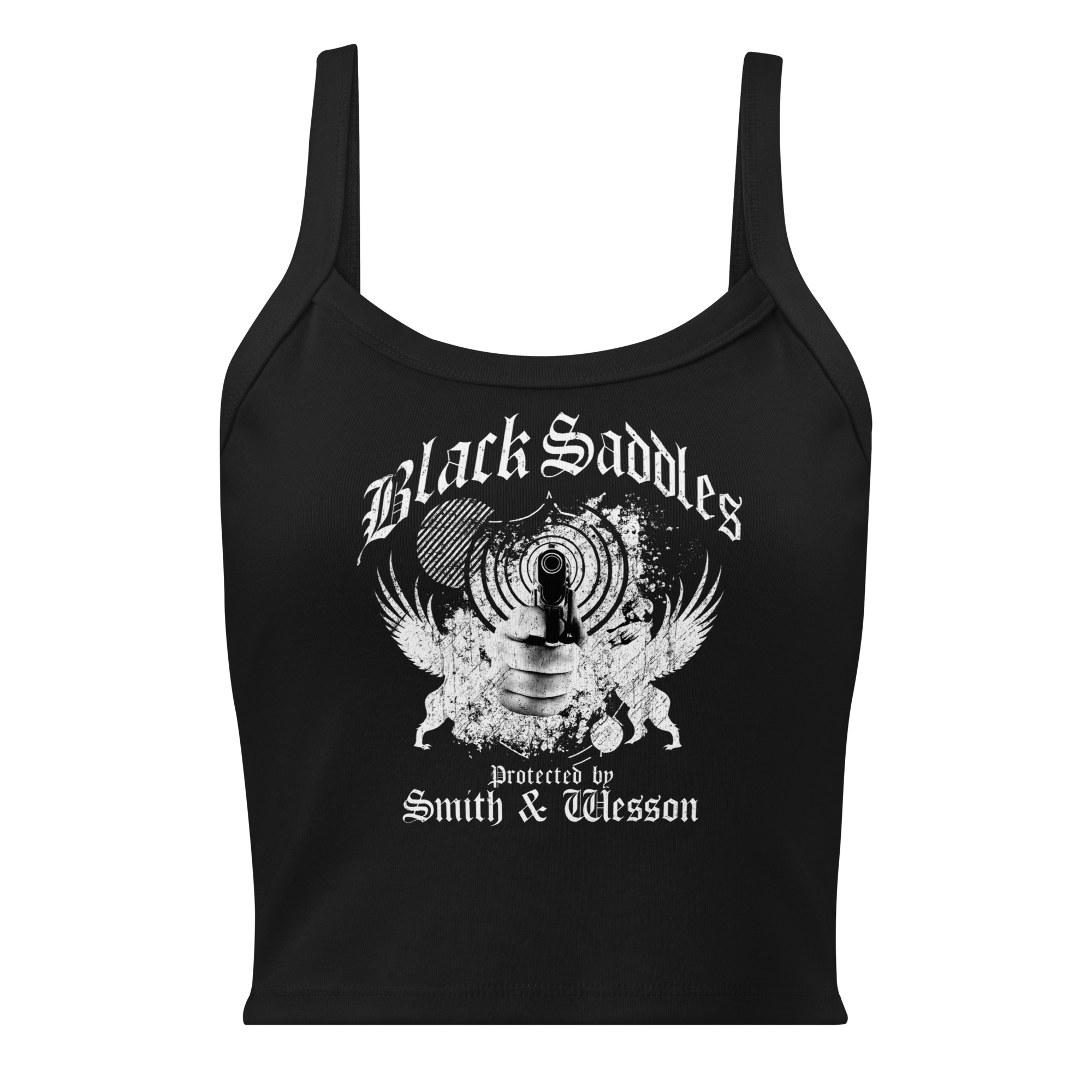 Featuring the Black Saddles “Protected by Smith & Wesson” design, it brings a fearless, feminine, and unapologetically western vibe to a classic silhouette.