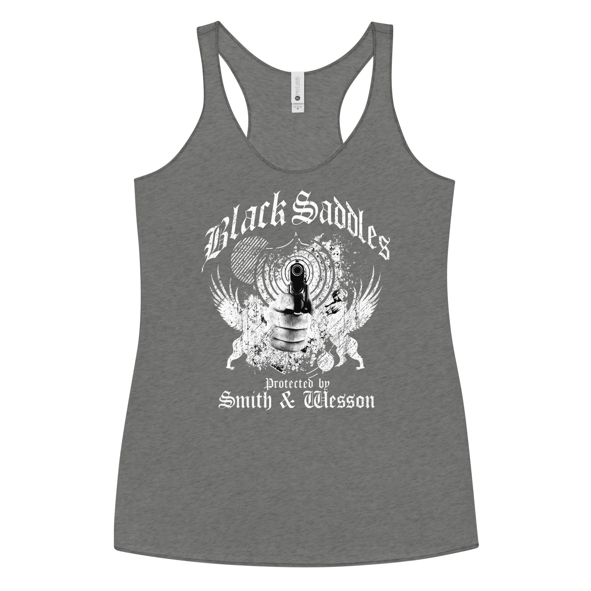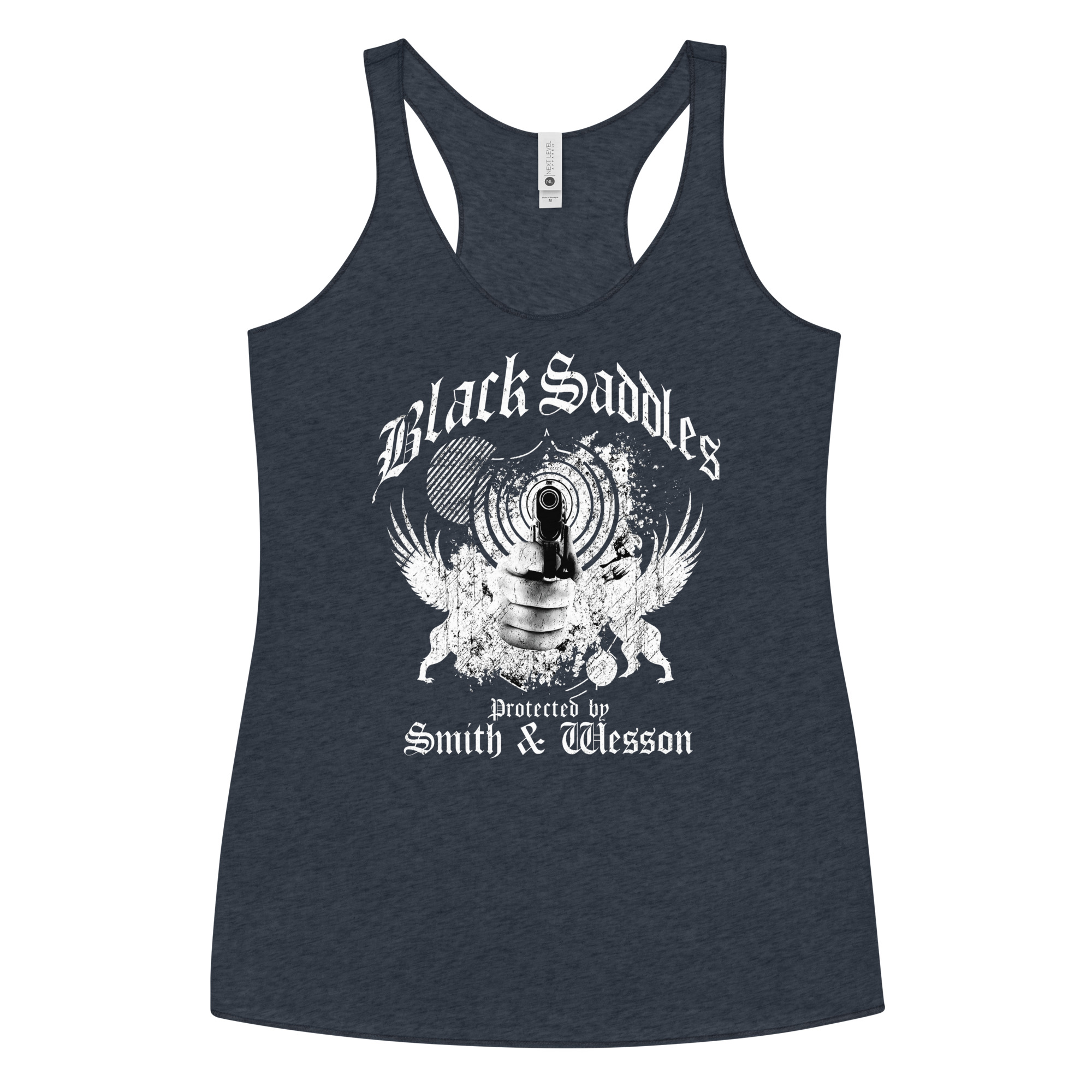 Freedom isn’t given — it’s defended. The Black Saddles Protected by Smith & Wesson tee is a loud-and-clear message that the American spirit stands ready. Featuring a front-and-center muzzle perspective with winged defenders and gritty distressed artwork, this design honors those who refuse to be victims.