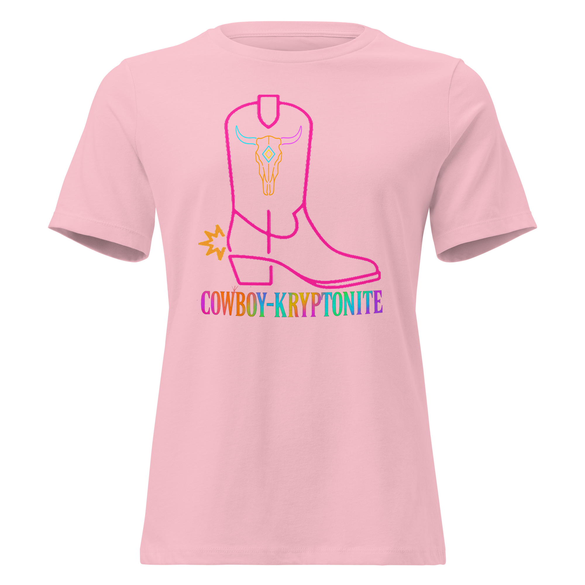 Neon pink line-art western boot with gold spur accents