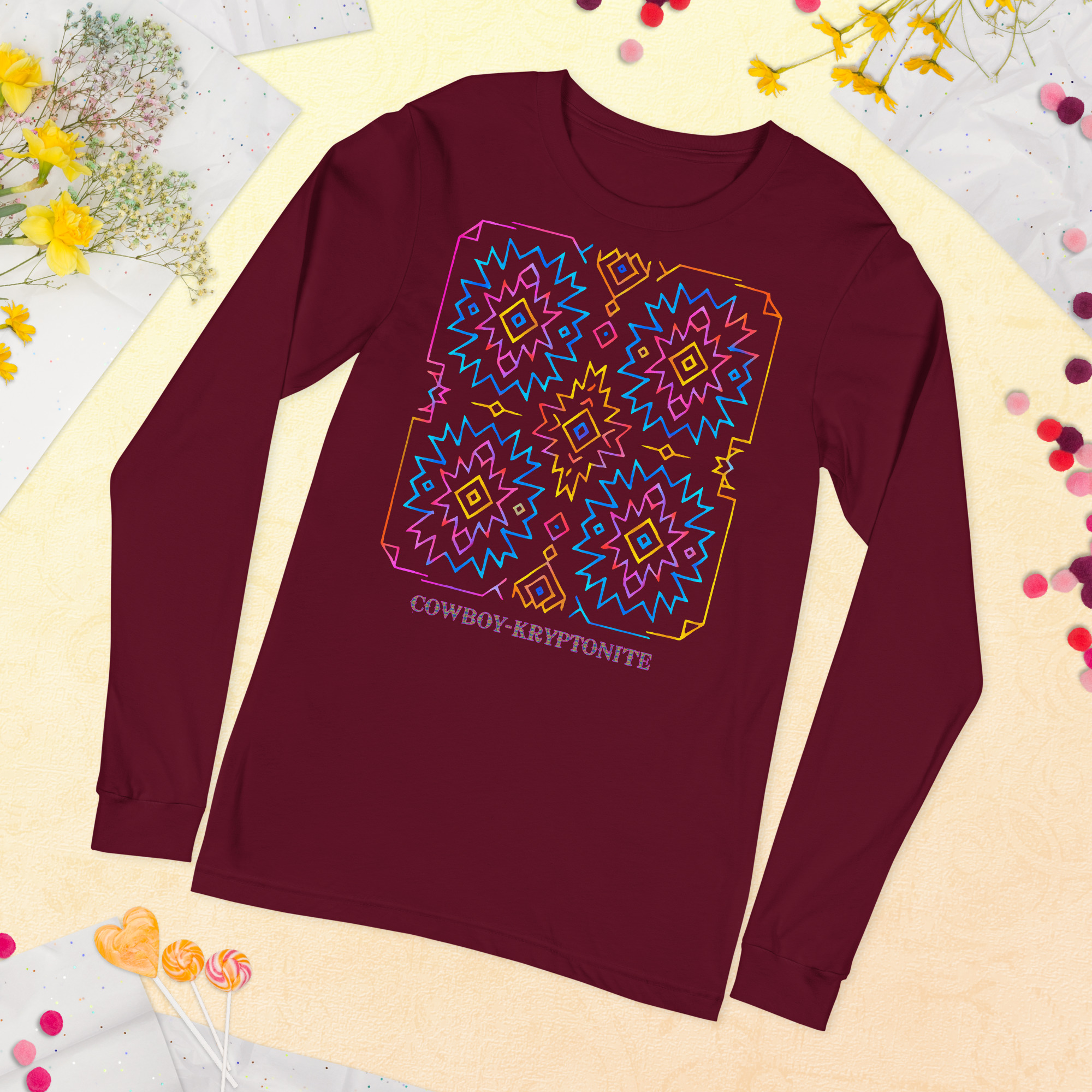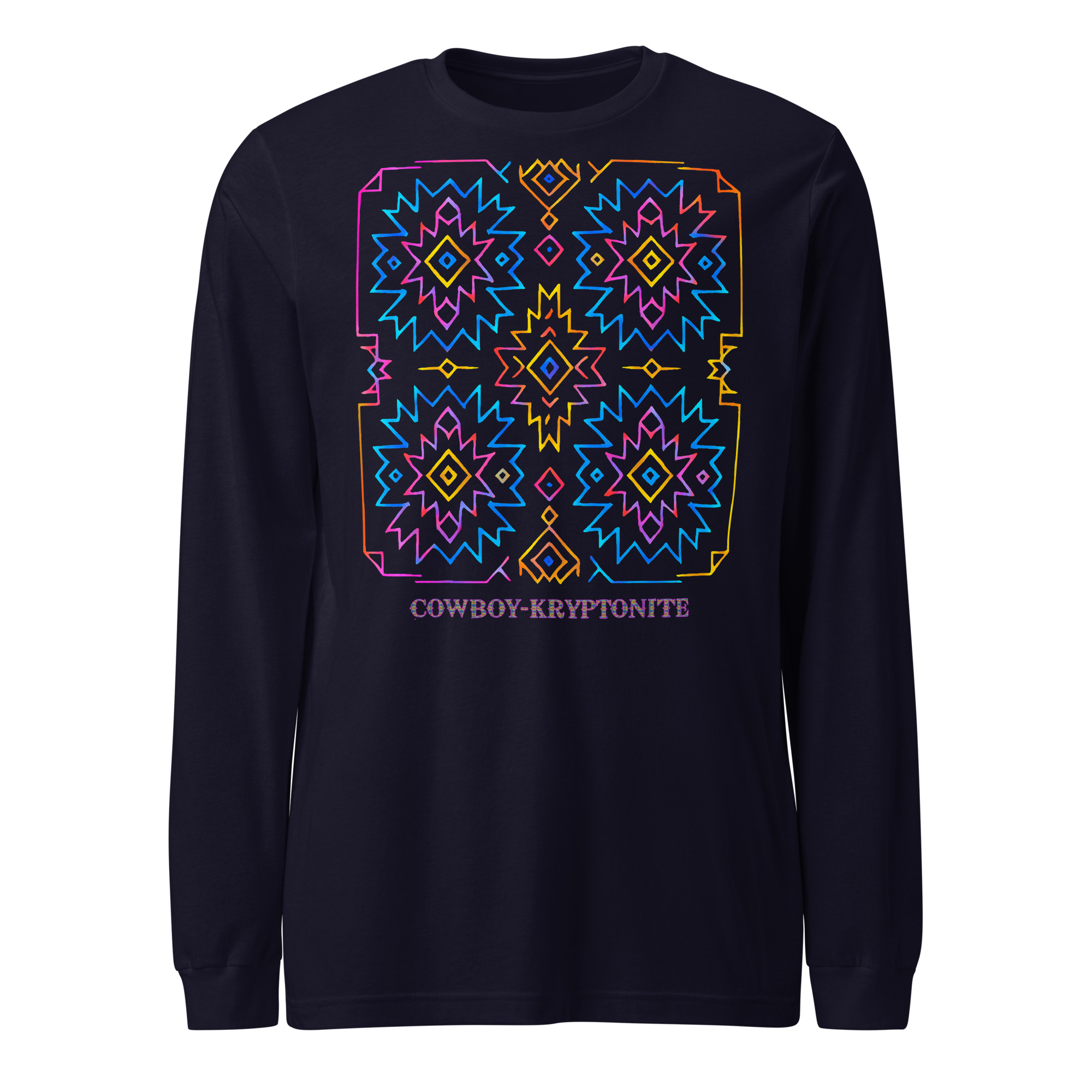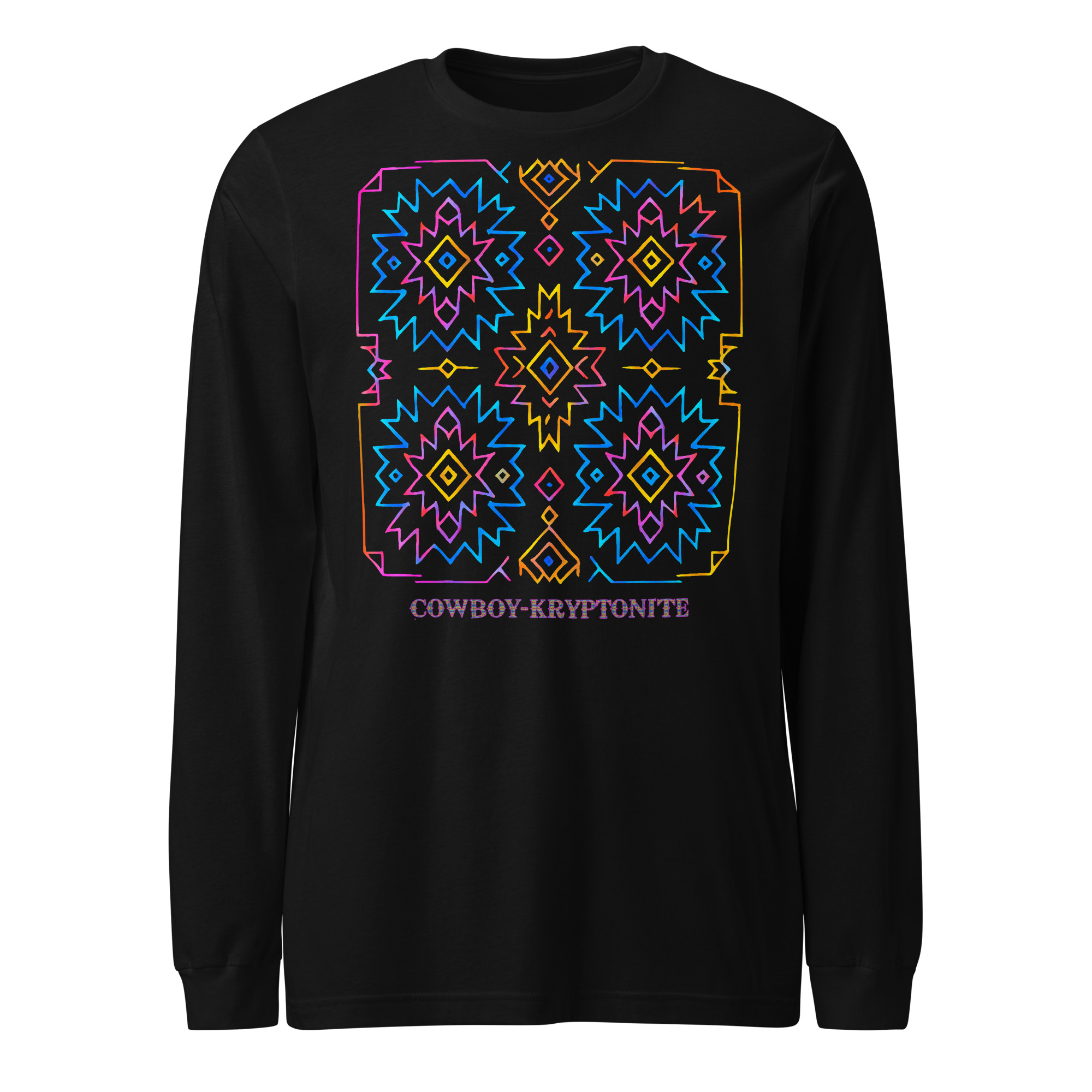 Featuring the bold Neon Aztec design, this long sleeve blends classic Southwest patterns with electric neon linework — making it a standout piece whether you’re out for the night or keeping it simple during the day. Soft, lightweight, and always comfortable, it’s a go-to for any season.