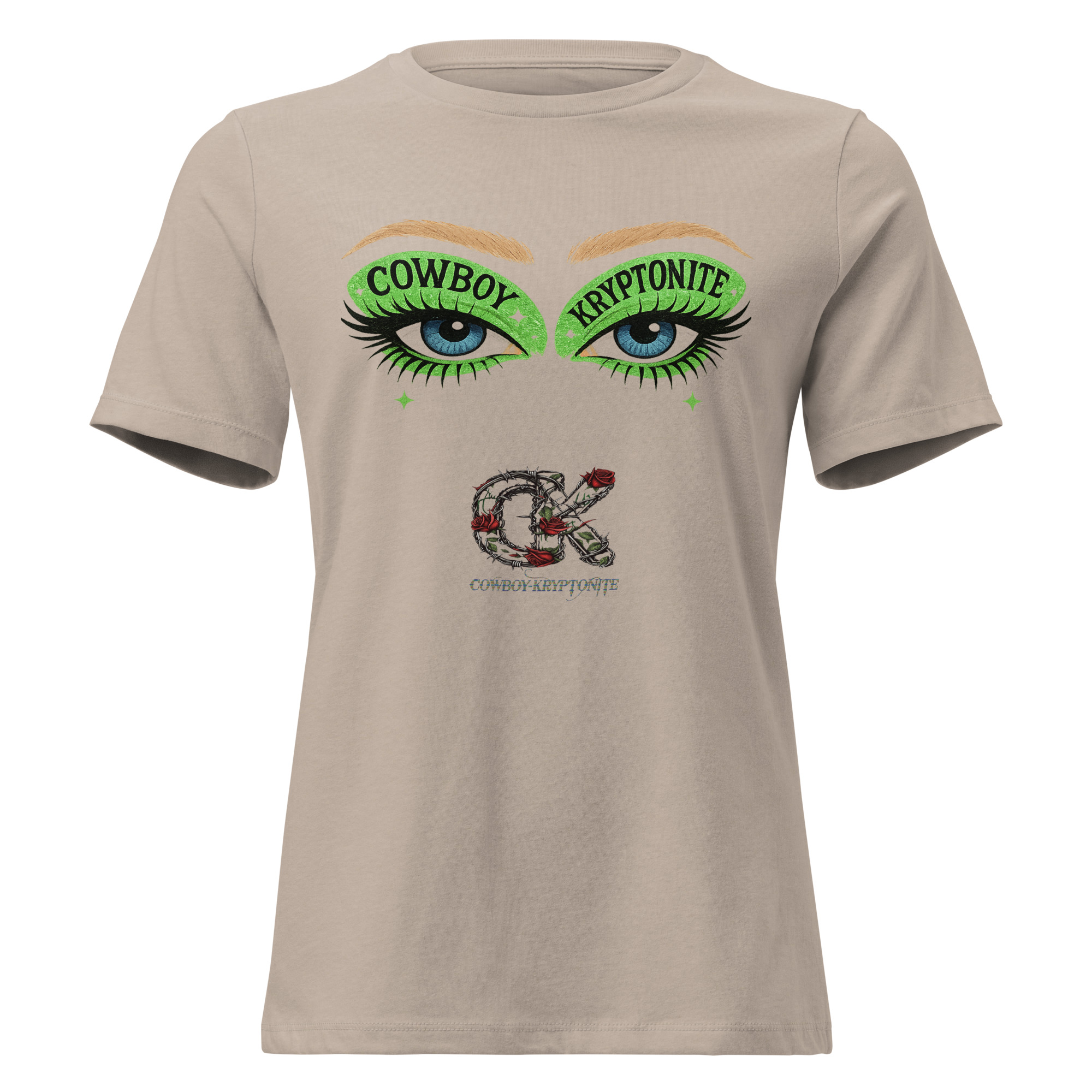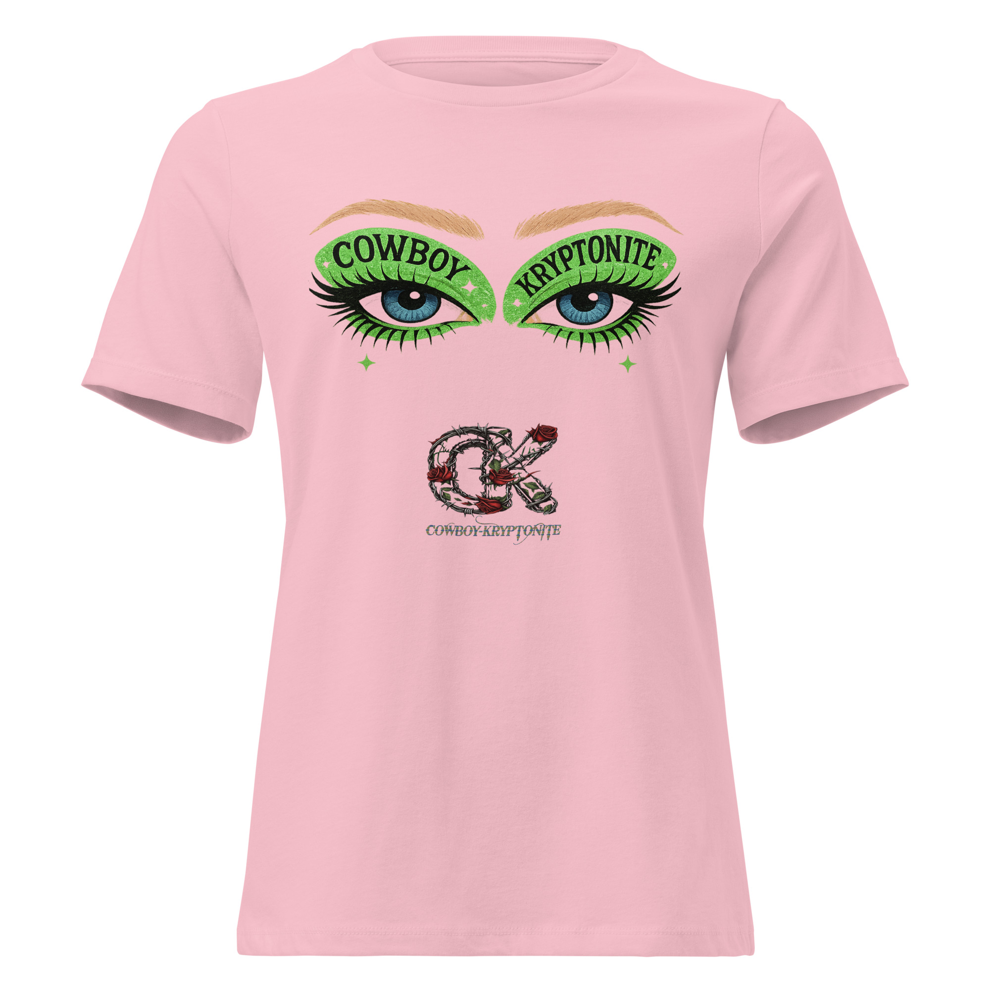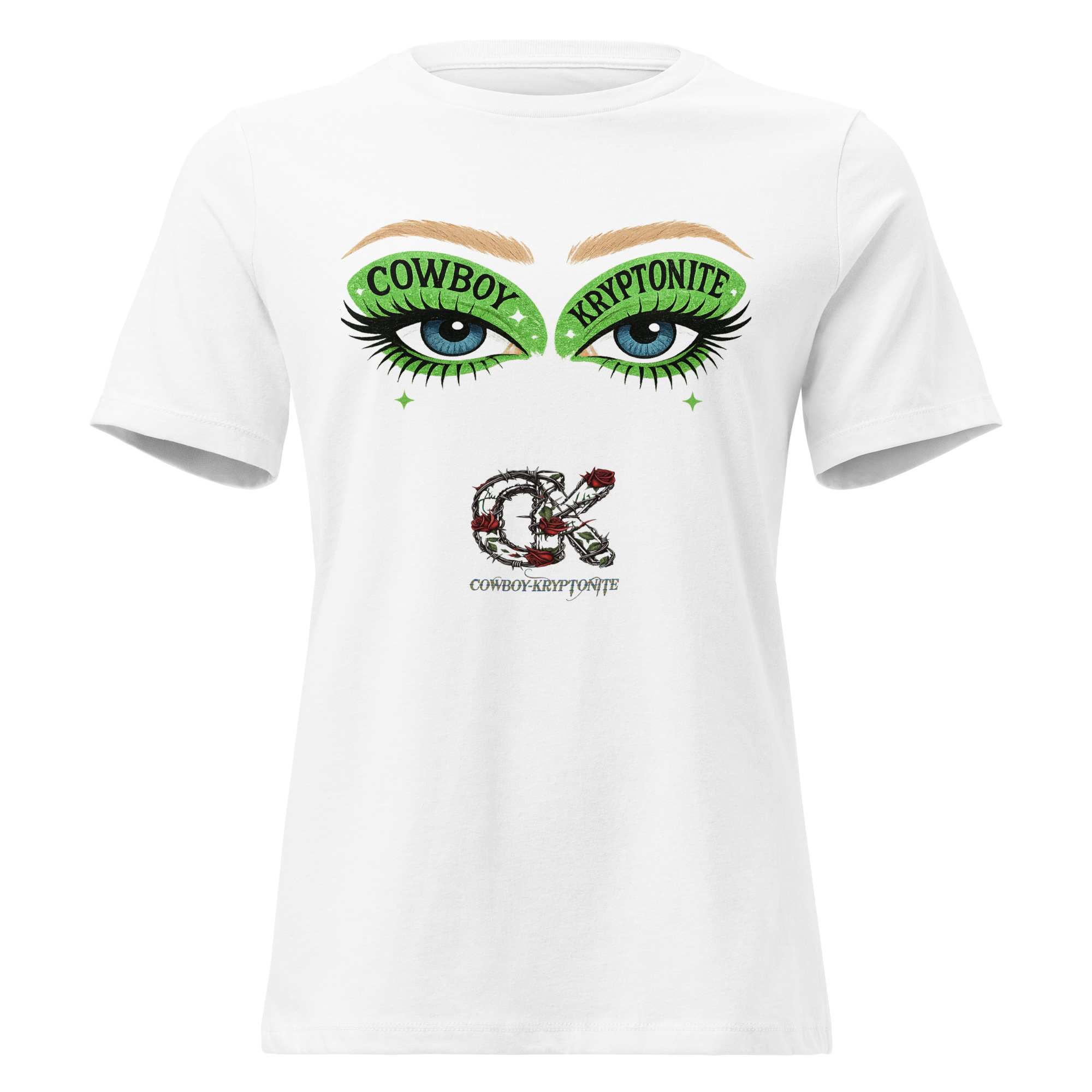 Step into your power with the tee that says everything without saying a word. Cowboy Kryptonite Eyes brings Western glam to a whole new level with bold green shadow, flirty lashes, and that “I know exactly who I am” energy.