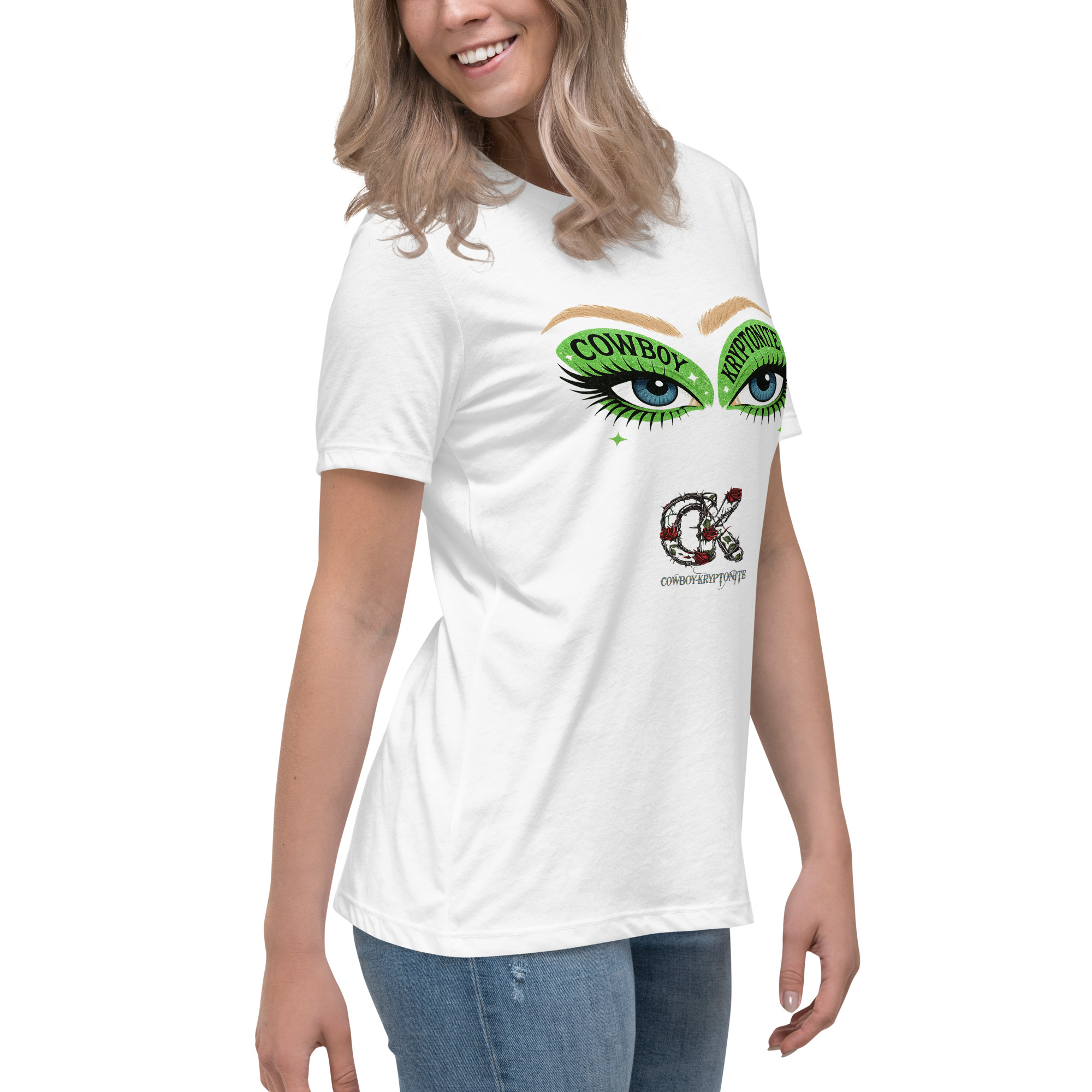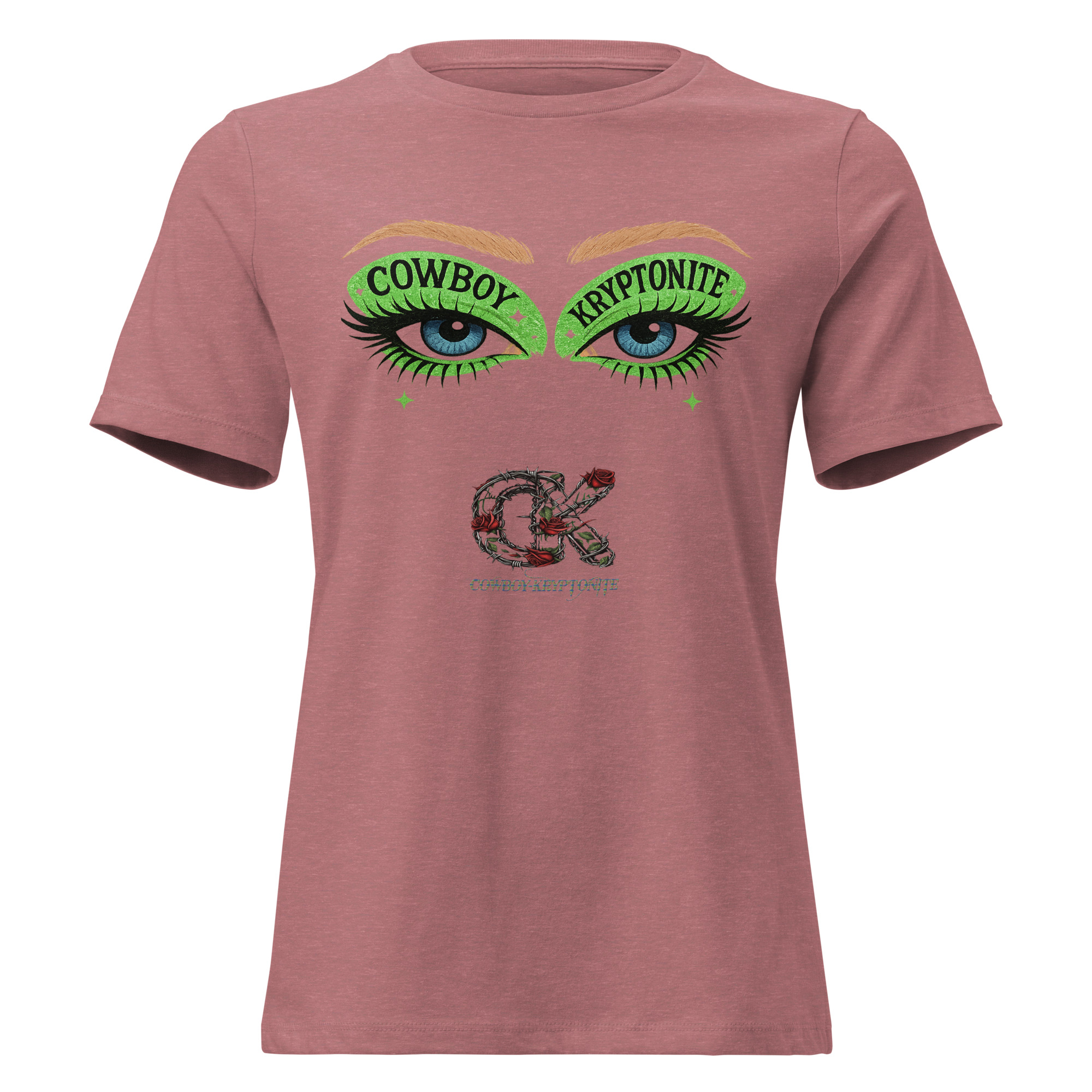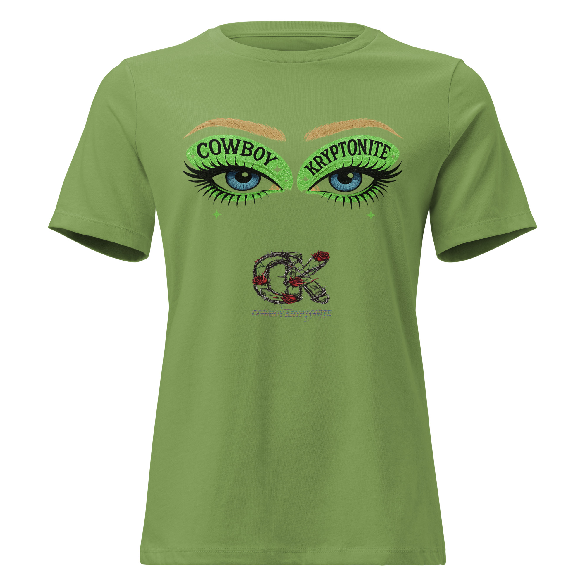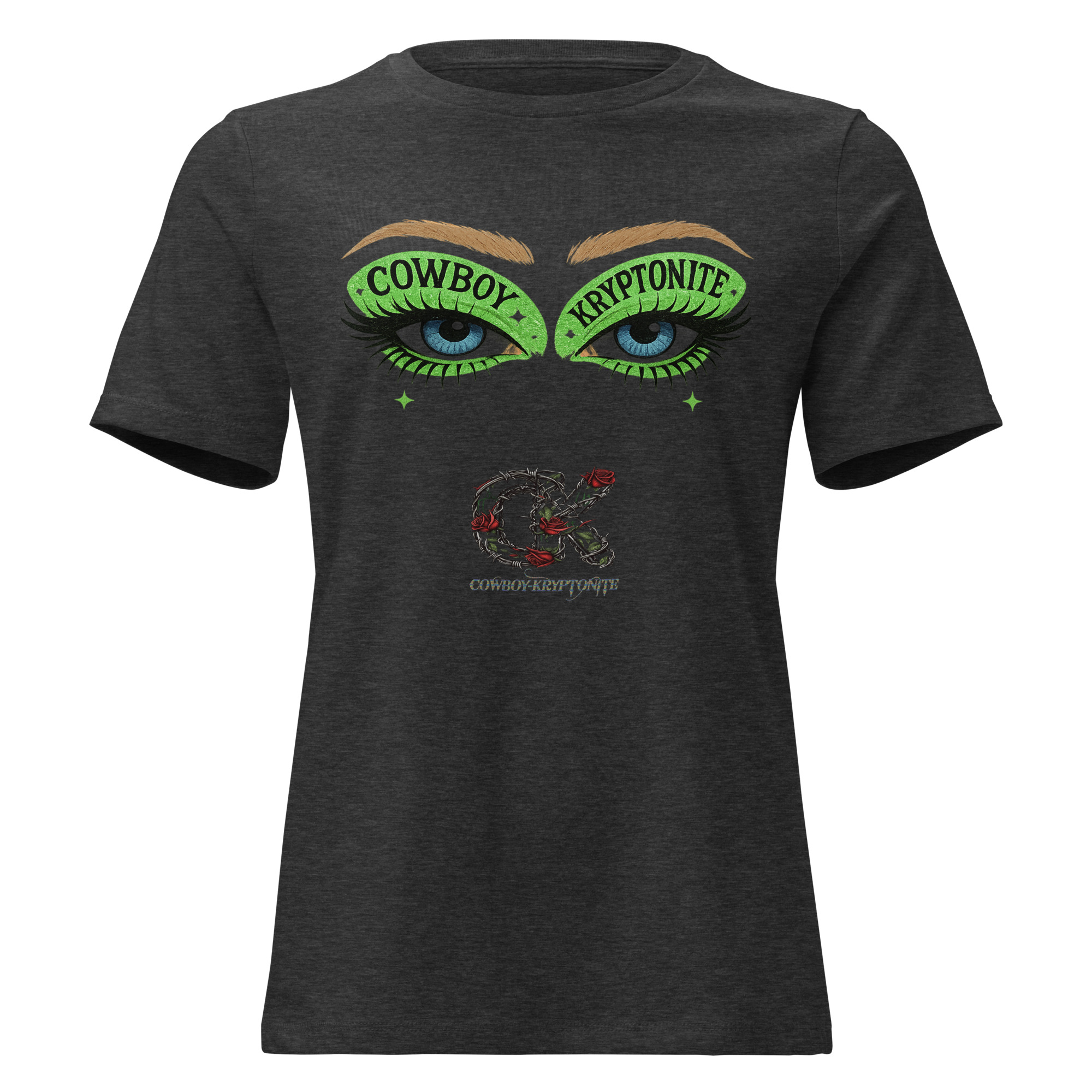 Step into your power with the tee that says everything without saying a word. Cowboy Kryptonite Eyes brings Western glam to a whole new level with bold green shadow, flirty lashes, and that “I know exactly who I am” energy.