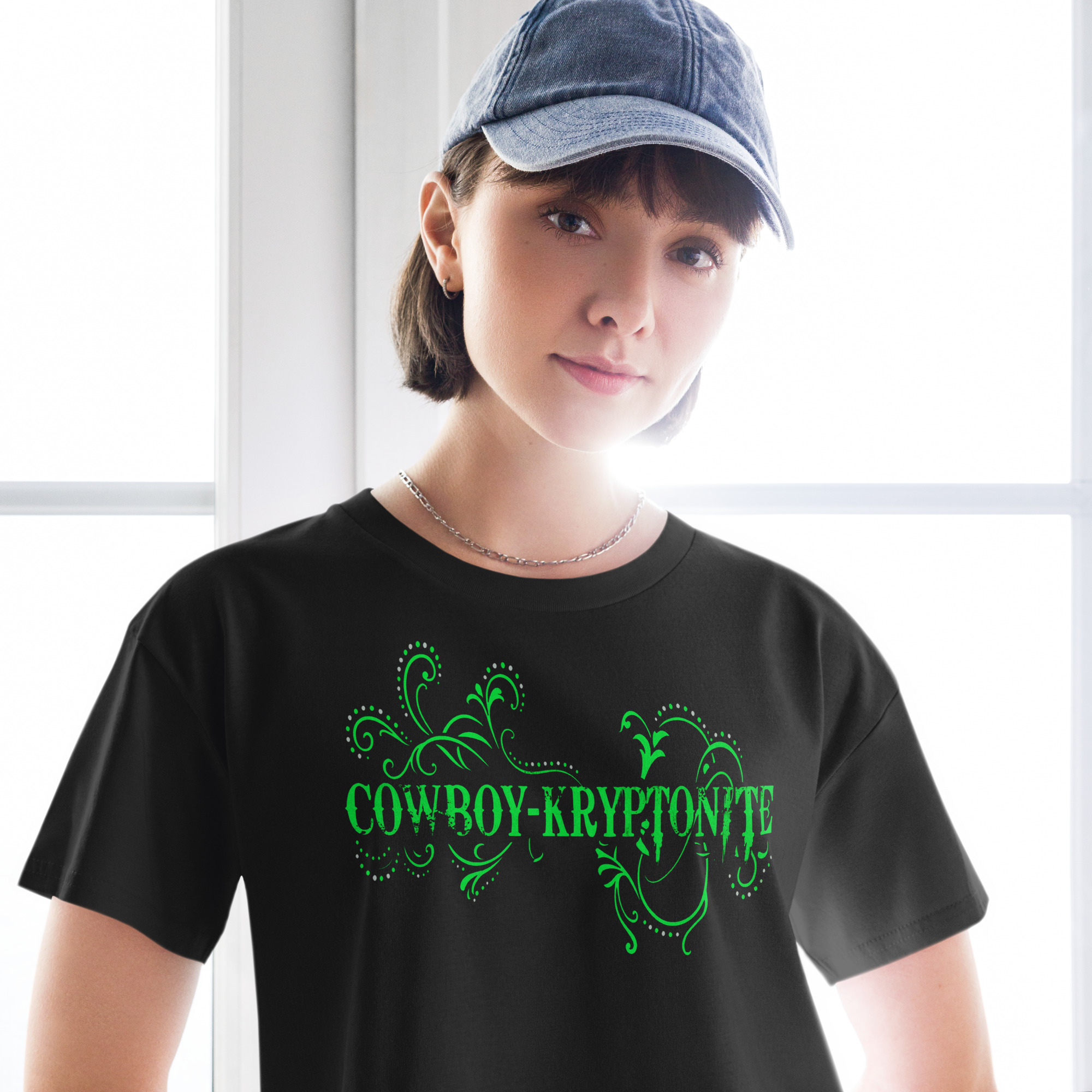 Step into your wild side with the original Cowboy-Kryptonite design — now on a premium cropped tee built for comfort, style, and summer heat. Made from ultra-soft 100% combed cotton, this crop top feels smooth, flattering, and durable, making it your new favorite for concerts, rodeos, nights out, or everyday western chic.