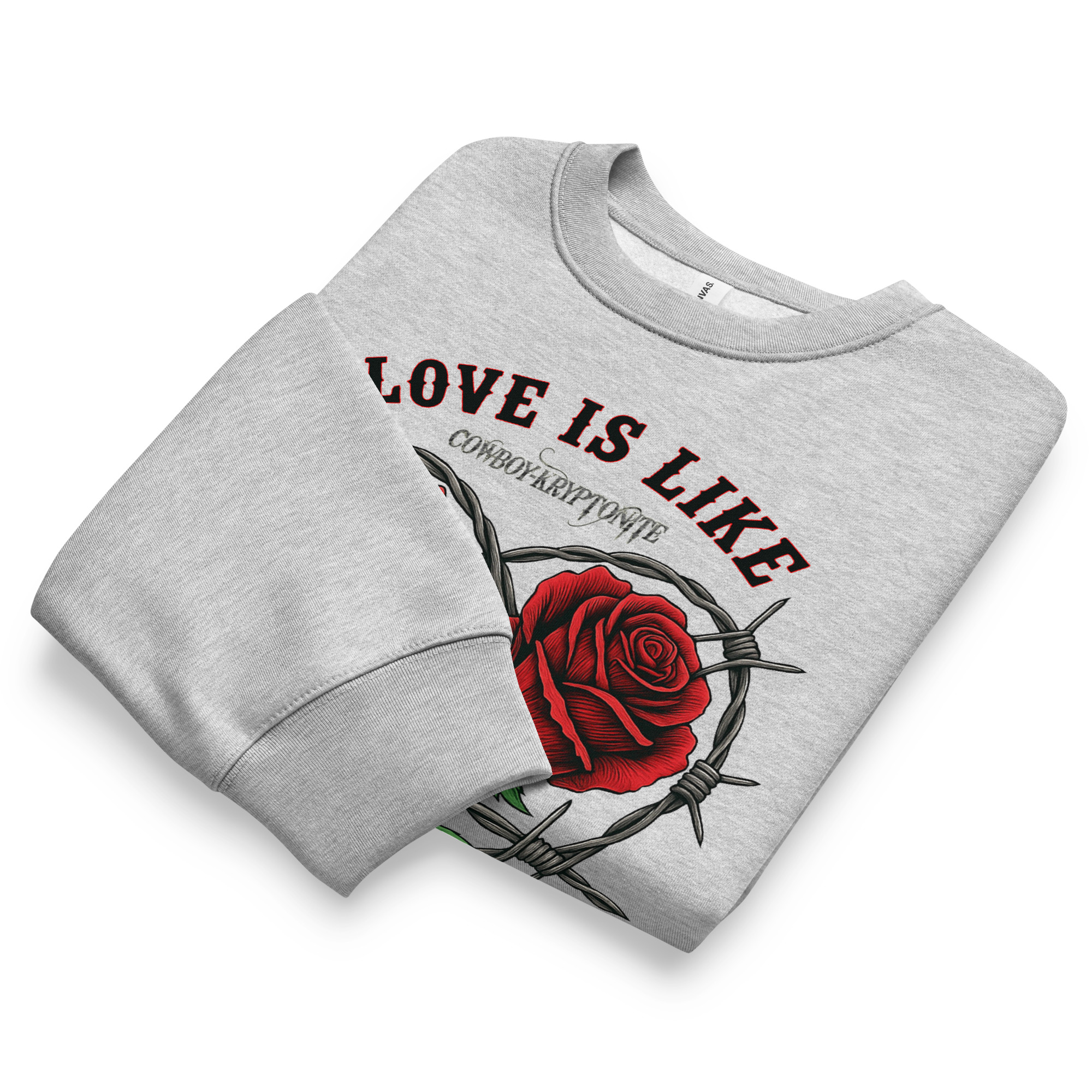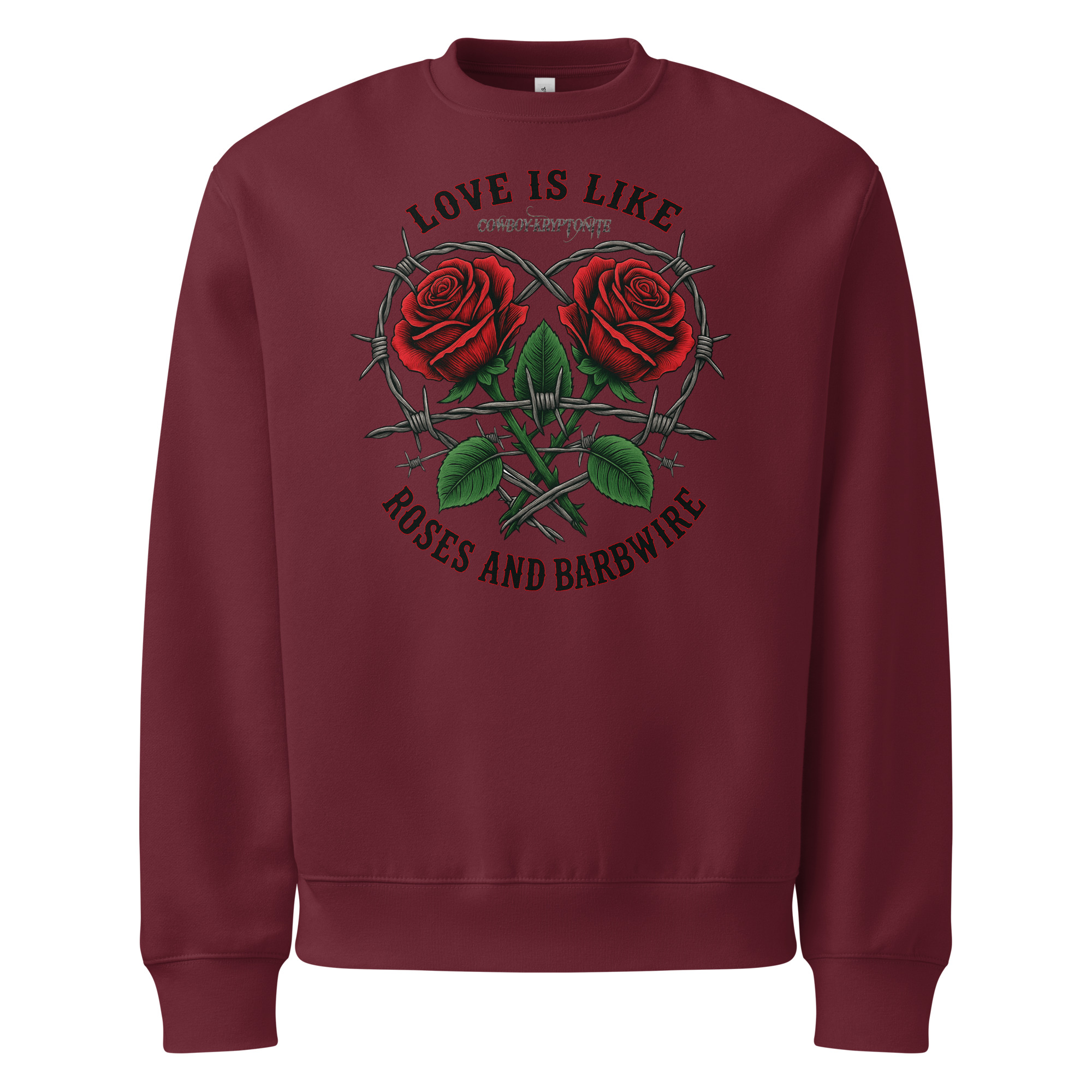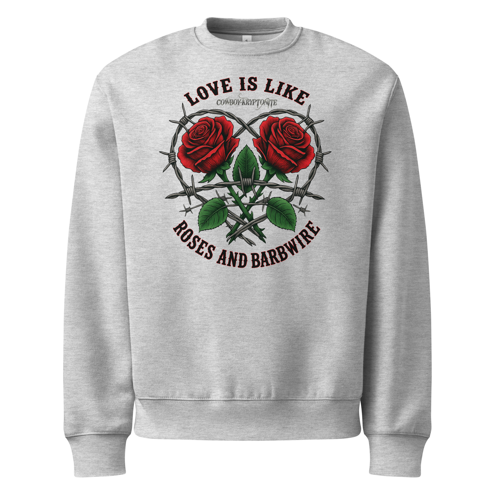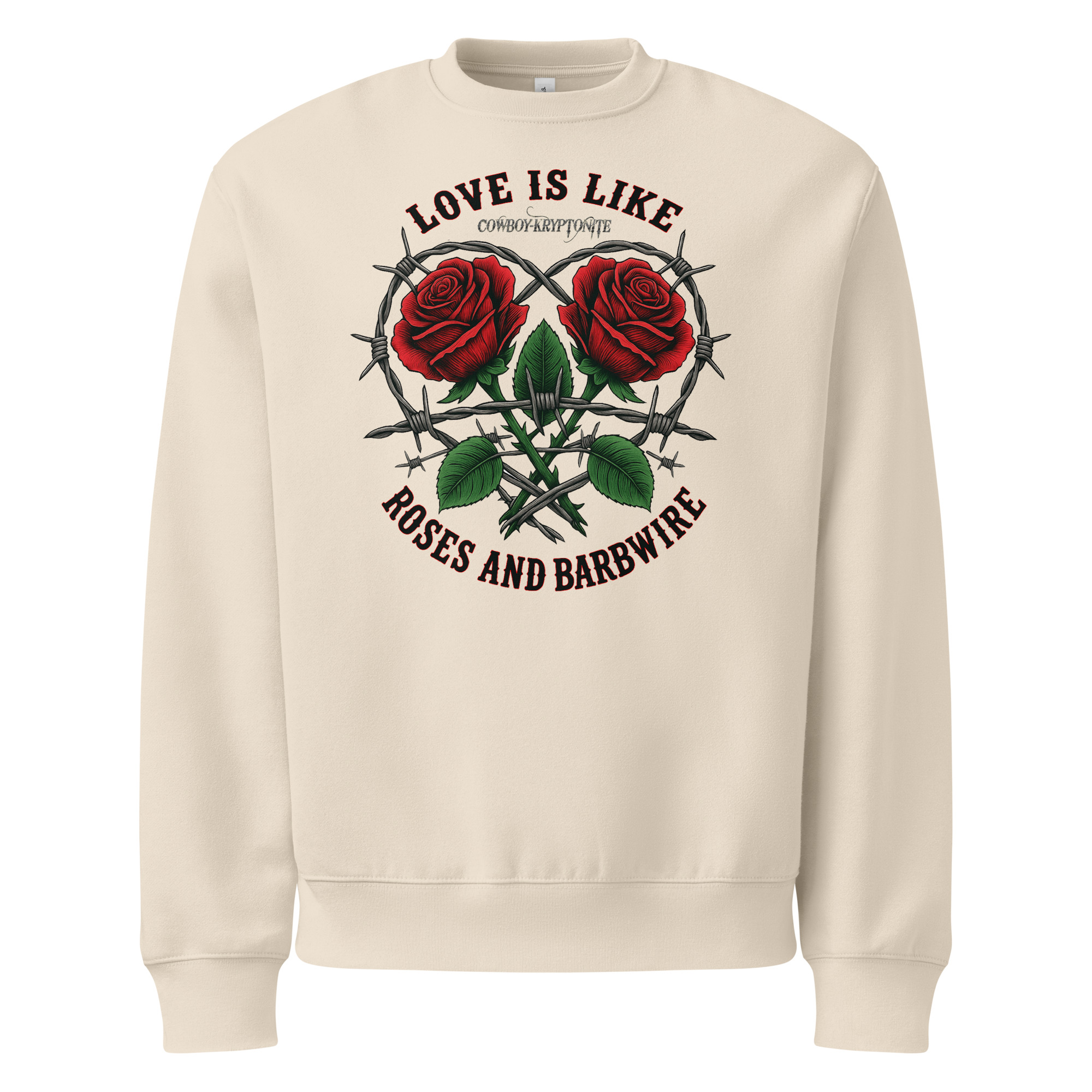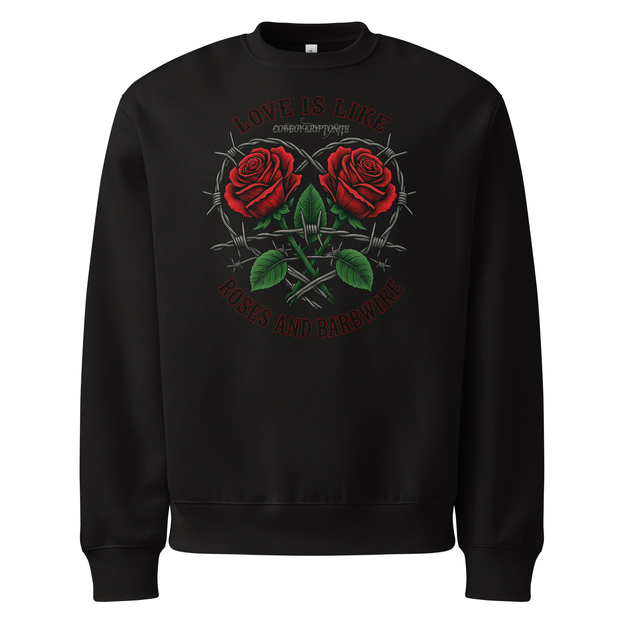 The bold roses bring the beauty. The barbwire shows the strength. And together? They tell the world you’re no stranger to love that leaves a mark.