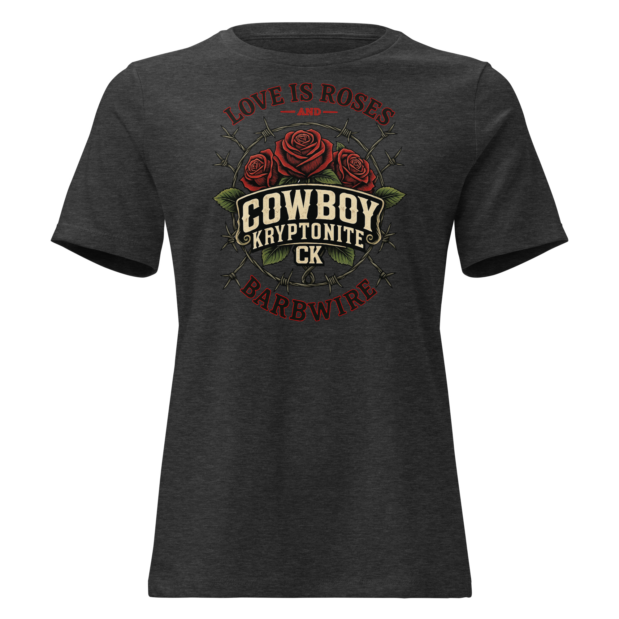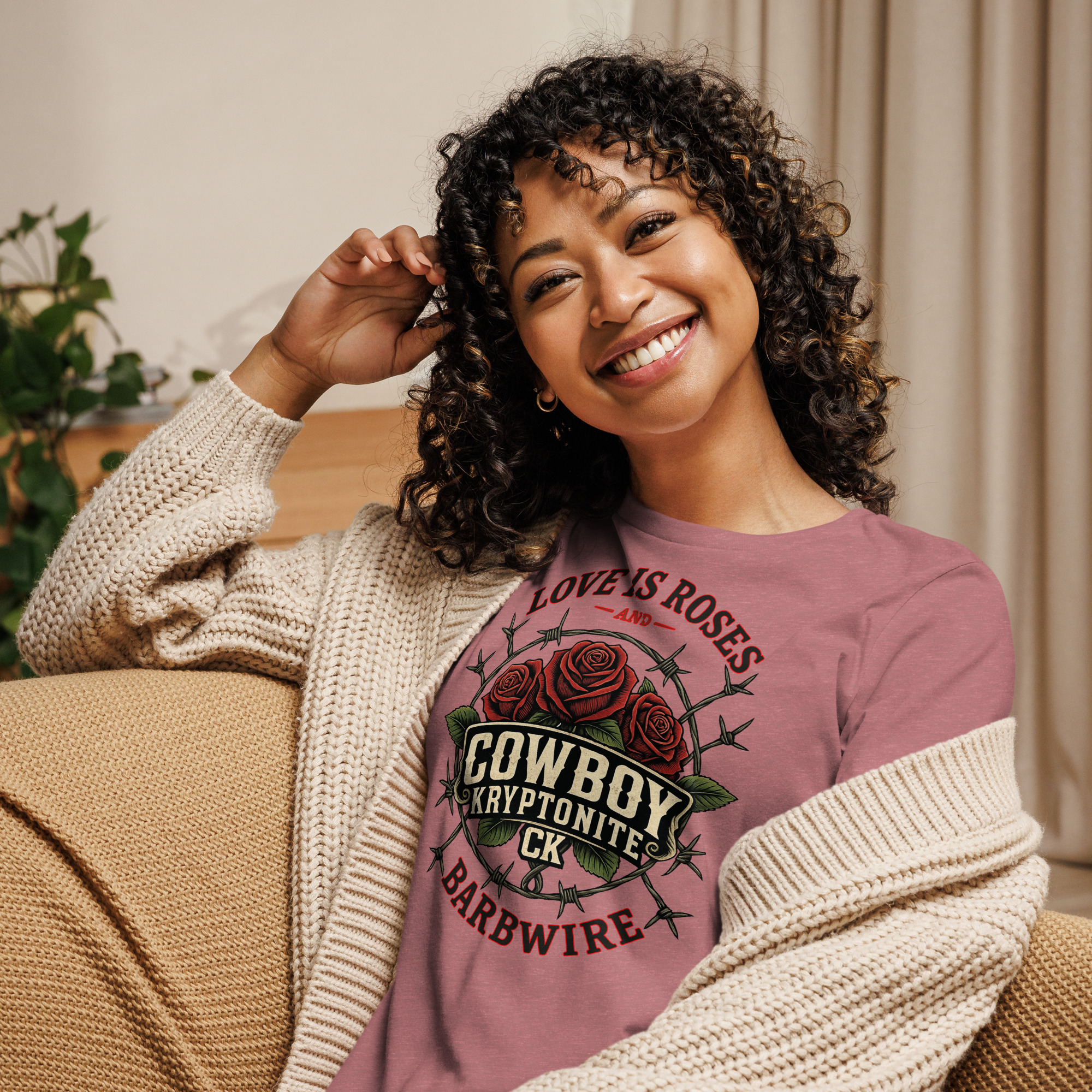 This tee was made for the woman who knows love isn’t always soft petals — sometimes it’s fire, grit, and a little bit of trouble worth chasing.